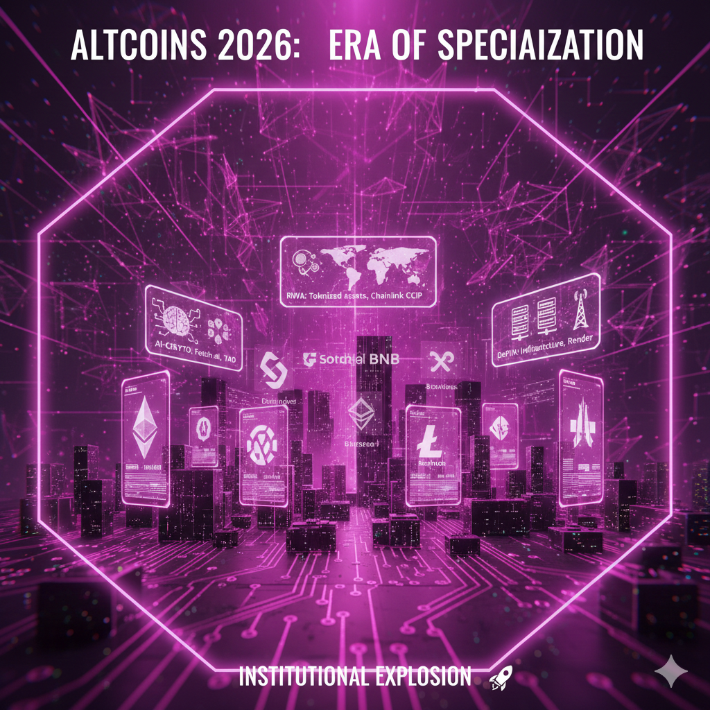 К началу 2026 года рынок альткоинов перестал быть единым монолитом, который просто следует за Биткоином. Мы вошли в фазу «Парадигмального сдвига», где доминирование BTC снижается, а капитал перетекает в конкретные экосистемы с реальной утилитарностью. Если 2024-й был годом мемкоинов, то 2026-й — это год инфраструктуры, ИИ и регулируемых финансов.