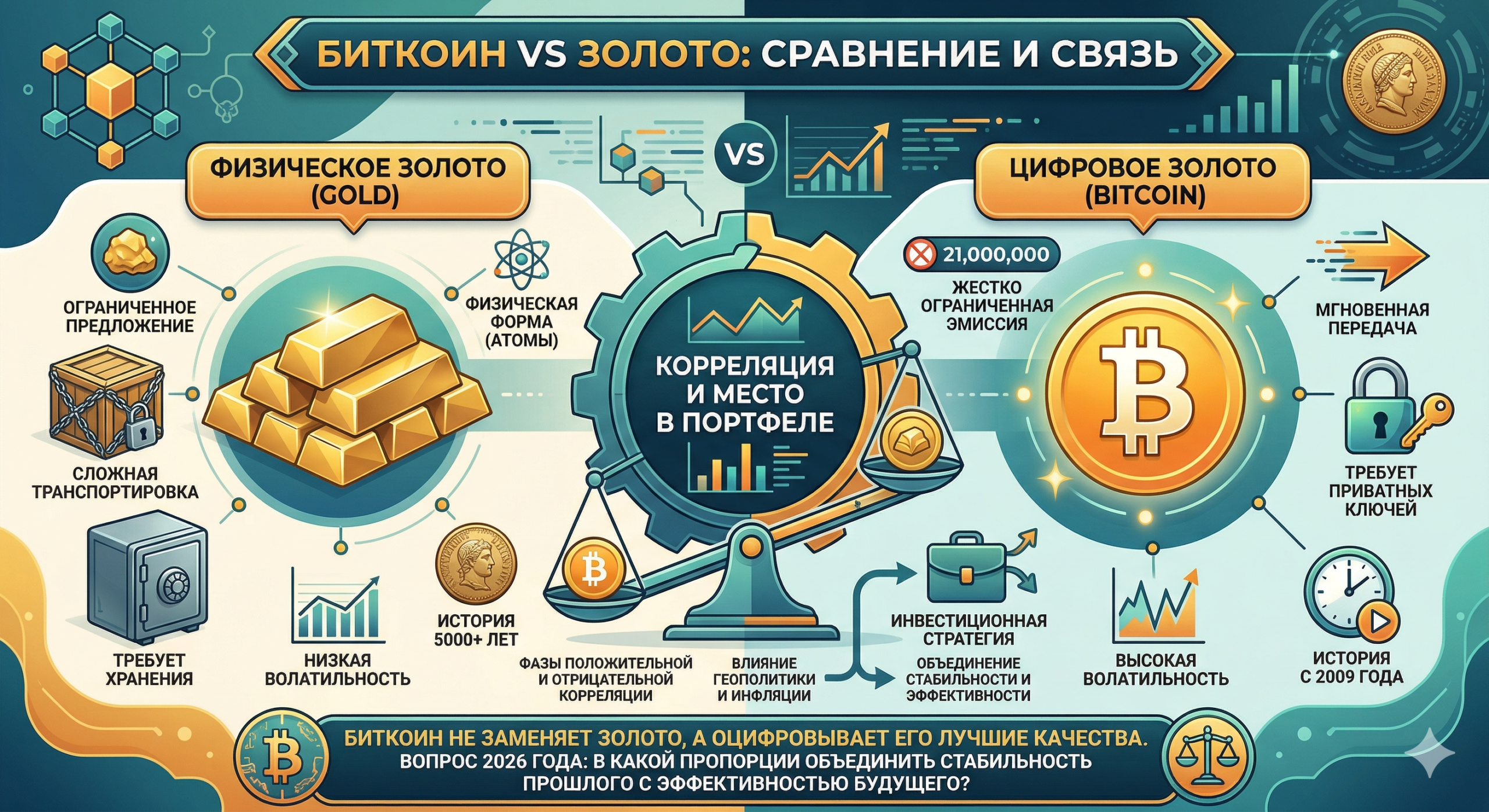 Для инвестора 2026 года вопрос стоит не «Золото или Биткоин?», а «В какой пропорции объединить стабильность прошлого с эффективностью будущего?».